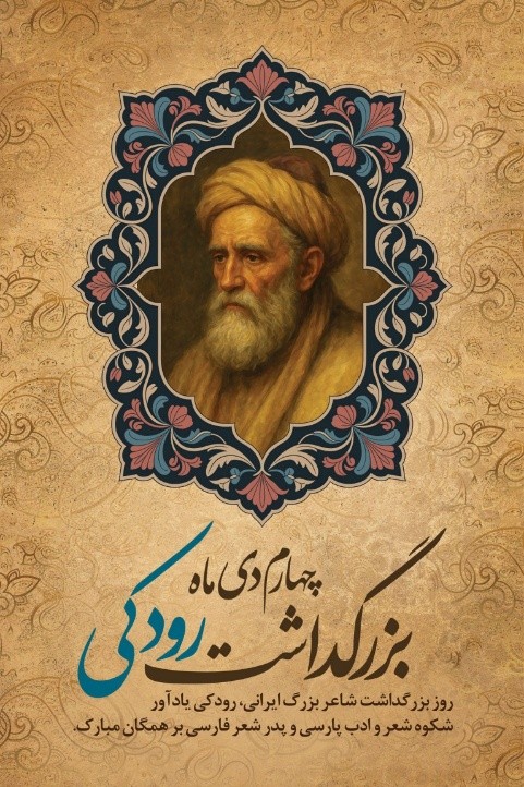 چهارم دی ماه ( 25 دسامبر) در تقویم ایران، روز نکوداشت رودکی است. به رودکی لقب « پدر شعر فارسی» دادند. جعفر بن محمد رودکی (م، ۳۲۹ ق)، از شاعران بزرگ ایرانی دوره سامانی در قرن چهارم قمری است.
